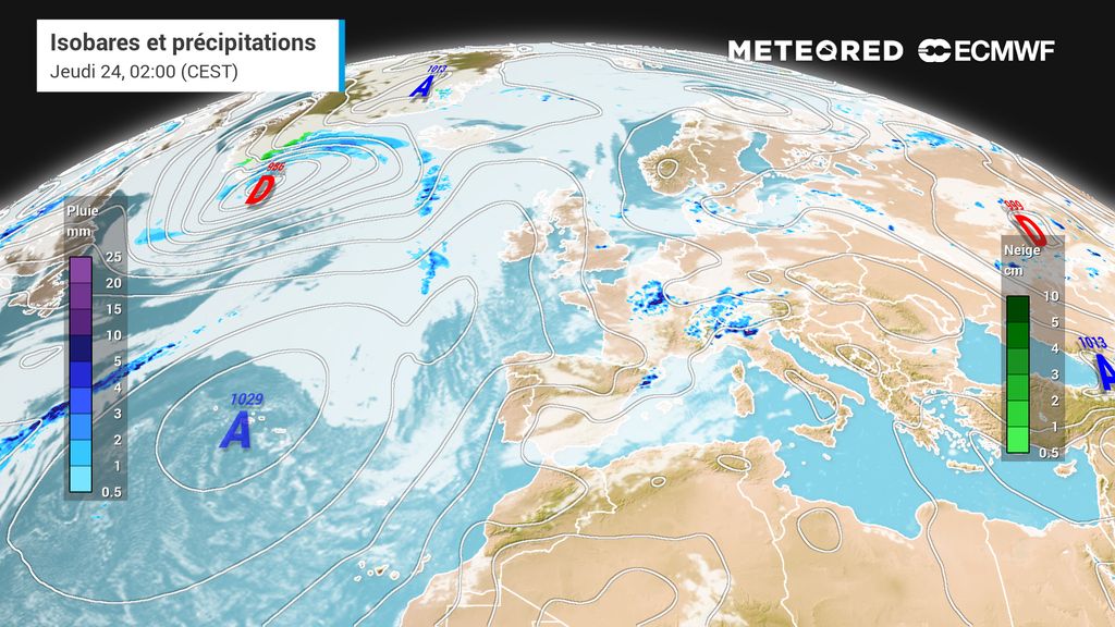 Une goutte froide circule depuis ce matin sur le sud des îles Britanniques et provoque un temps extrêmement instable en direction de la France, avec des averses orageuses parfois très fortes.