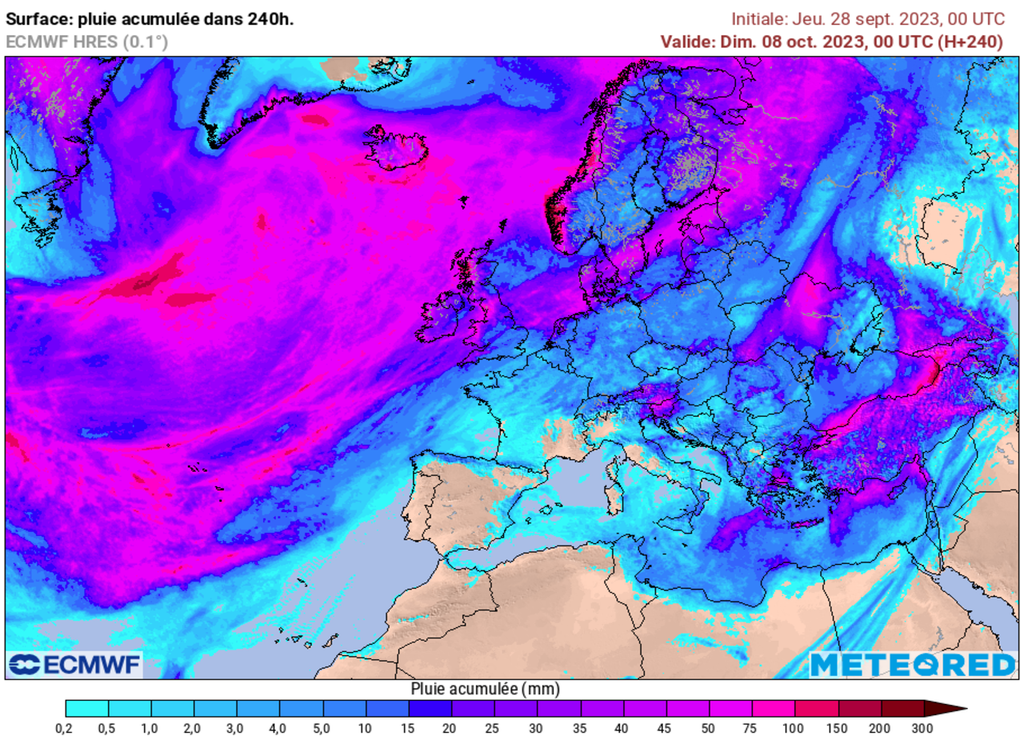 Jusqu'aux environ du 8 octobre, la situation reste extrêmement sèche sur la France, encore plus sur toute la moitié Sud et le quart Sud-Est. Seule la moitié Nord pourra observer quelques passages pluvieux généralement peu importants. La sécheresse en surface ne risque donc pas de s'améliorer de sitôt.