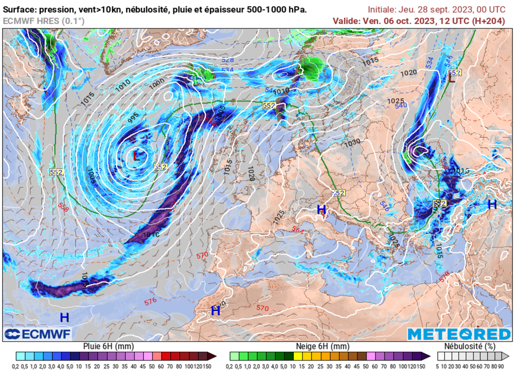 Ce retour à des valeurs plus classiques pour un début de mois d'octobre seront rapidement oubliées. Et pour cause, l'anticyclone va se décaler en Europe Centrale et de fait, générer un flux de Sud sur l'hexagone. Nous devrions être suffisamment protégés par ces hautes pressions, limitant fortement les débordements nuageux et pluvieux en provenance de vigoureuses dépressions situées entre le large de l'Atlantique et les pays scandinaves.