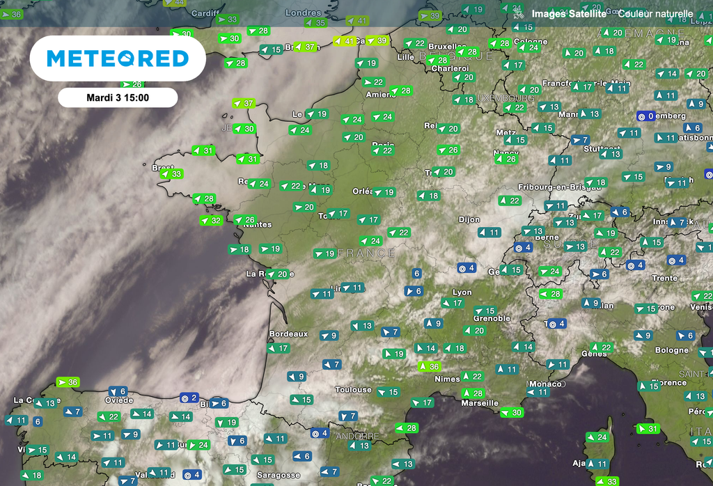 Chez Meteored, nous continuons à innover. Notre objectif : vous rapprocher toujours plus de l’atmosphère. C’est pourquoi nous lançons une nouvelle version de notre visualiseur, enrichi de couches affichant des données observées du vent, de la température et de la qualité de l’air, directement intégrées aux cartes satellites.