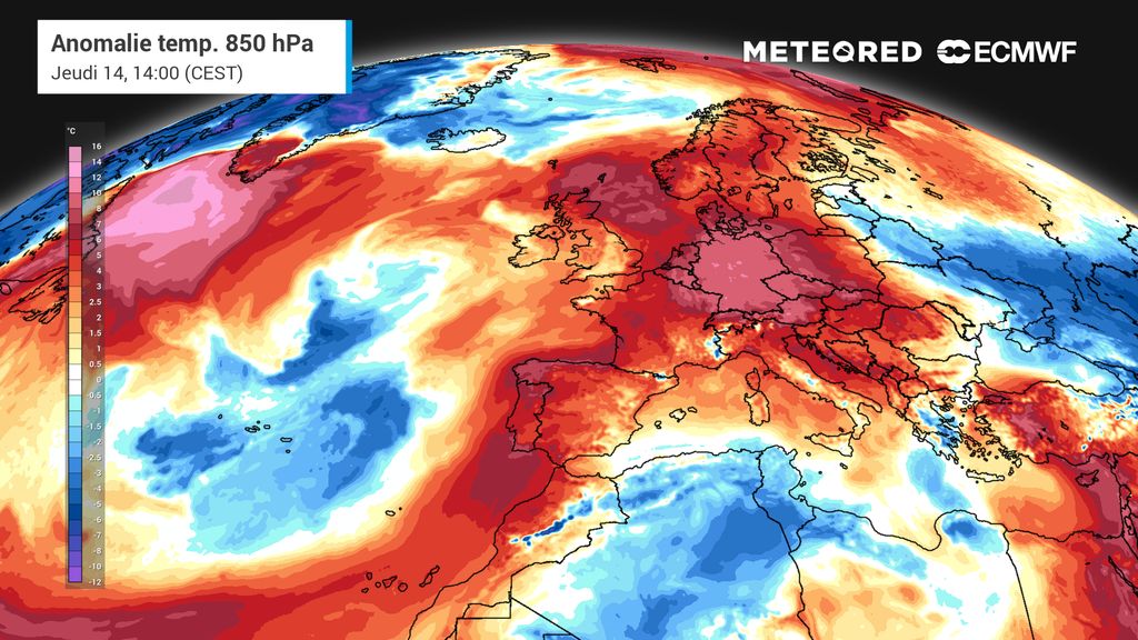 Avec une masse d'air de l'ordre de 25°C à 1500 mètres d'altitude, les températures affichent un niveau remarquable voire exceptionnel dans de nombreuses régions. En été, il faut généralement ajouter une quinzaine de degrés à la valeur enregistrée à cette altitude pour obtenir les températures près du sol. Vous l'avez compris : les 40°C sont fréquents au sud et vont désormais gagner le nord-est du territoire.
