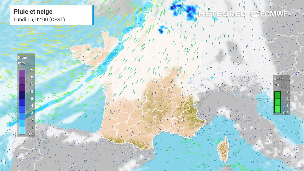 Le positionnement de ces centres d'action va engendrer un flux de sud-ouest à ouest sur la France. Une masse d'air plutôt douce sera de fait au rendez-vous avec un vent modéré, plus fort en direction des côtes du nord-ouest.
