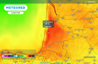 Dimanche, nous resterons globalement au-dessus des normales de saison, avec 16°C sur la moitié Nord, 22°C sur la moitié Sud l'après-midi en moyenne. Mais dans le détail, on observera un léger et bref rafraîchissement sur le Nord-Ouest (13°C à Brest, Rouen et Lille) alors qu'on aura déjà 20 à 22°C entre Lyon, Besançon et Strasbourg dans le Nord-Est. Des pointes à 24-26°C seront probables au Sud.