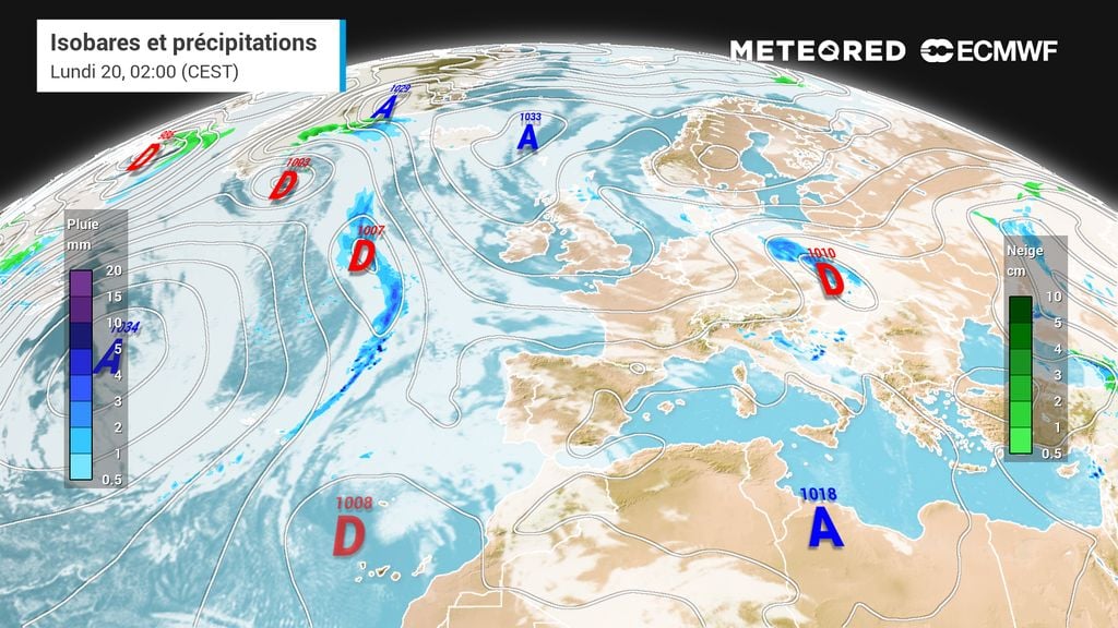 Globalement, la France sera l'un des pays européens où il pleuvra le moins lors des 8 prochains jours, avec une douceur qui pourrait s'affirmer dans la moitié Sud. Aucune période de temps agité n'est pour le moment prévue : les perturbations vont rester bloquées, un temps sec devrait dominer. Les rares régions à subir des averses recevront tout au plus 2 à 5 mm de pluie, davantage peut-être sous les orages vers les reliefs, notamment sur les Pyrénées.