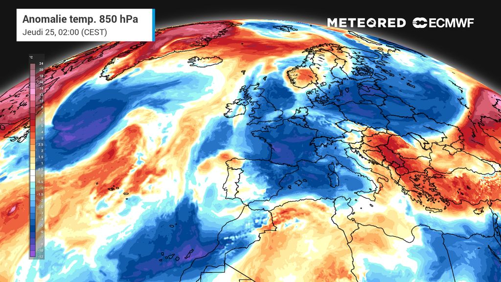 En réalité, les températures vont se situer le plus souvent de 5 à 8 degrés sous les normales de saison. Sous les pluies de la goutte froide, le déficit approchera parfois les 10 degrés !
