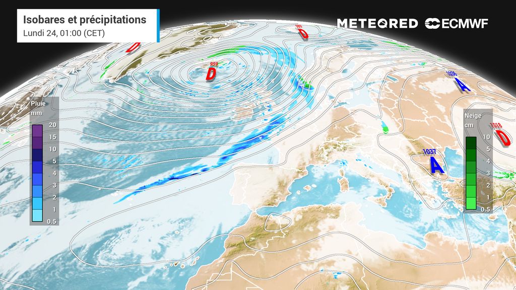 Toutefois, un temps plus calme semble se profiler pour la journée de dimanche, mais ce calme relatif cache une toute autre réalité, puisqu'une autre perturbation arrivera par la pointe bretonne en cours de journée.