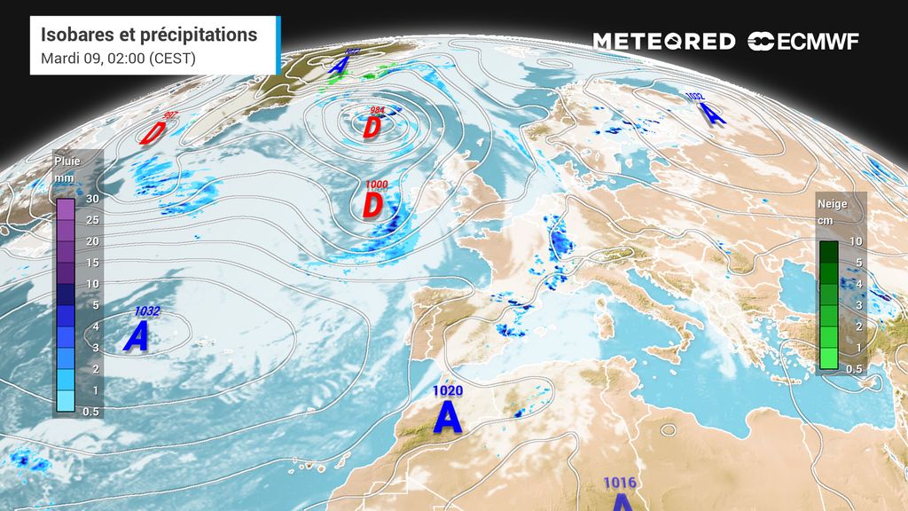 Une influence dépressionnaire se fera progressivement ressentir demain par l'ouest de la France. Pluies et orages sont attendus sur une partie de l'hexagone.