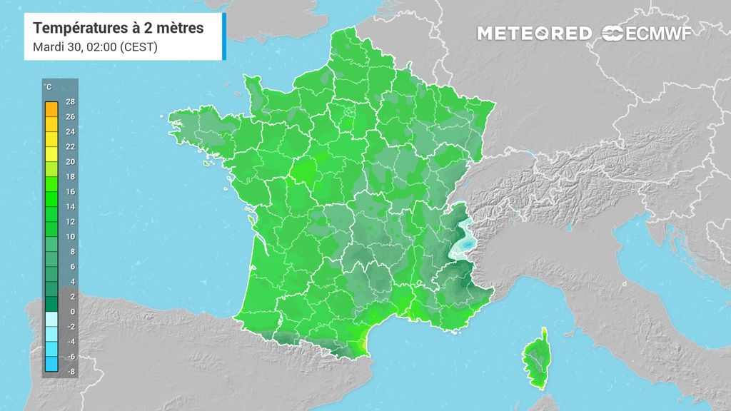 Adeptes des températures bien plus fraîches ou froides, pas de grandes tendances allant en ce sens. Bien entendu, les matinées pourront notamment être assez fraîches en fonction de la couverture nuageuse et du flux.