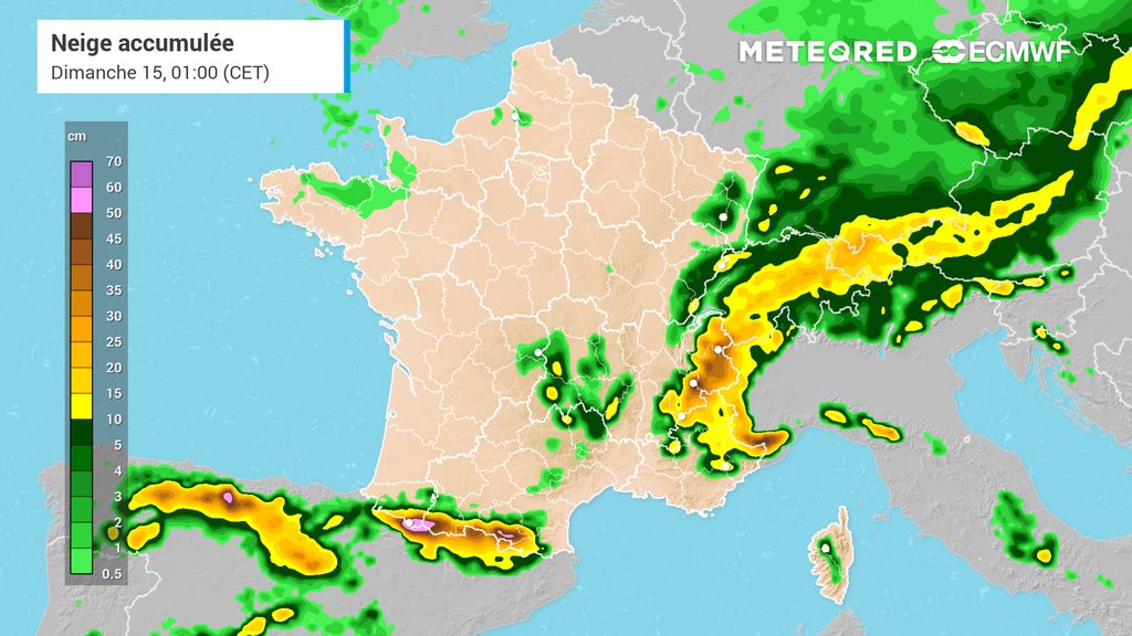 Ces chutes de neige se produiront par une température proche de 0 °C. Il est encore trop tôt pour dire si elle tiendra au sol. Elle pourrait en tout cas saupoudrer au moins la région.
