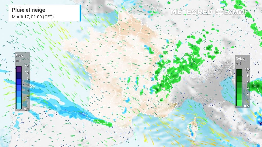 Des intempéries qui gagneront petit à petit les départements plus à l'est d'ici le courant d'après-midi. Le long des frontières belges, luxembourgeoises et allemandes, c'est une couche de plusieurs centimètres qui est possible.