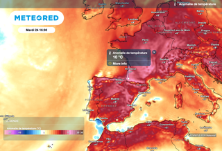 C'est vers les régions pyrénéennes qu'il fera le plus doux : mardi après-midi, on pourrait franchir les 25 ou 26°C dans cette zone, soit le seuil de chaleur, pour la première fois de l'année. Néanmoins, nous serons encore loin des records mensuels de chaleur pour février : ceux-ci sont compris entre 18 et 22°C sur la moitié Nord, 20 à 29°C dans le Sud, et même 31,2°C à Saint-Girons (Ariège), le 29 février 1960.