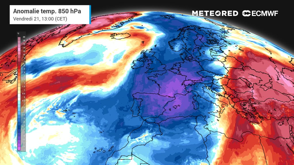La barre des -10 degrés pourrait localement être approchée dans le nord-est du pays, tandis que des valeurs inférieures à -5 degrés sont prévues par le modèle européen entre les Hauts-de-France, l’Île-de-France, la région Centre-Val de Loire, la région Grand Est et la Bourgogne–Franche-Comté.