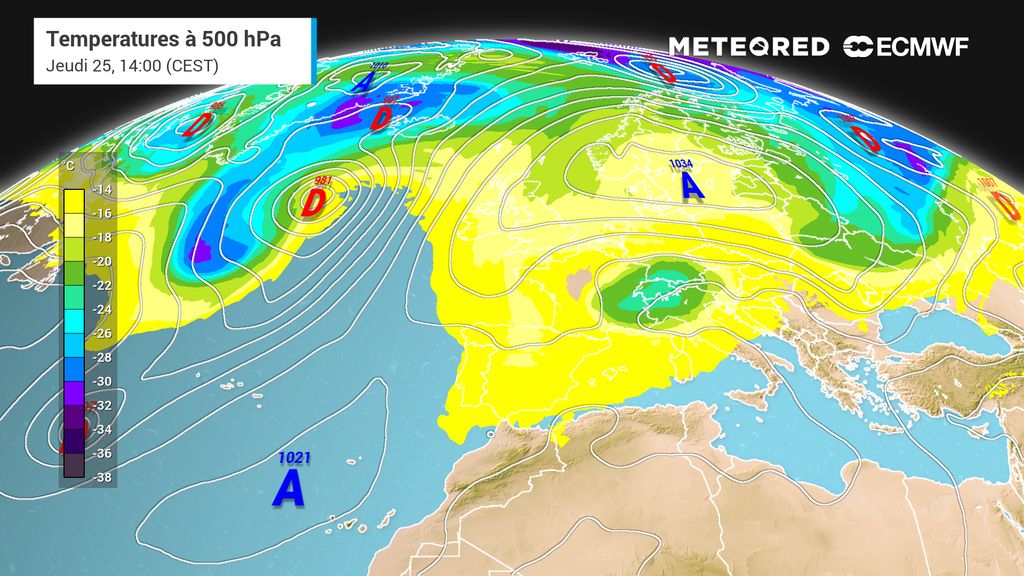 Si l'anticyclone est en train de revenir par l'Atlantique, il va progressivement s'étendre vers le nord de l'Europe. Malgré cette hausse du champ de pression, les conditions météo vont demeurer chaotiques en France en raison de la persistance de la goutte froide. Celle-ci va en effet rester bloquée avec son air froid en altitude.