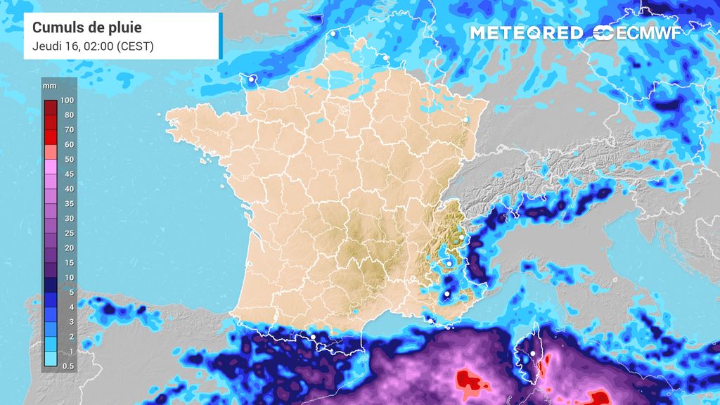 Les orages attendus au cours des prochaines heures pourraient être particulièrement pluvieux, se chargeant en humidité au-dessus d’une mer Méditerranée particulièrement chaude.