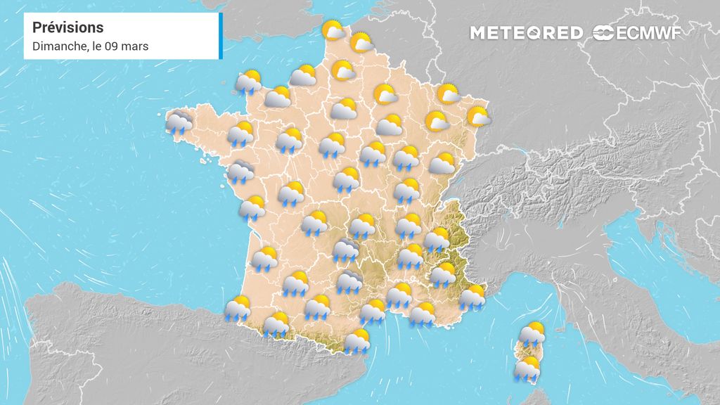 C’est la journée de ce samedi qui marque la transition avec la météo printanière. On va en effet retrouver dès ce matin un risque de quelques pluies vers les Pyrénées Orientales et les Cévennes.