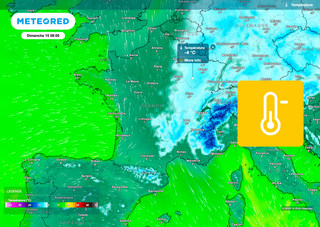 Samedi matin, avec l'orientation du flux au Nord, les températures se rapprocheront peu à peu des normales de saison, avec 0 à 4°C sur la moitié Nord, 4 à 8°C sur la moitié Sud, jusqu'à 10°C près de la Méditerranée. Avec 0°C prévu à Lille et à Reims, 1°C à Metz et Rouen, certaines régions frontalières pourraient déjà connaître de premières gelées sous abri, entre 0 et -2°C localement.