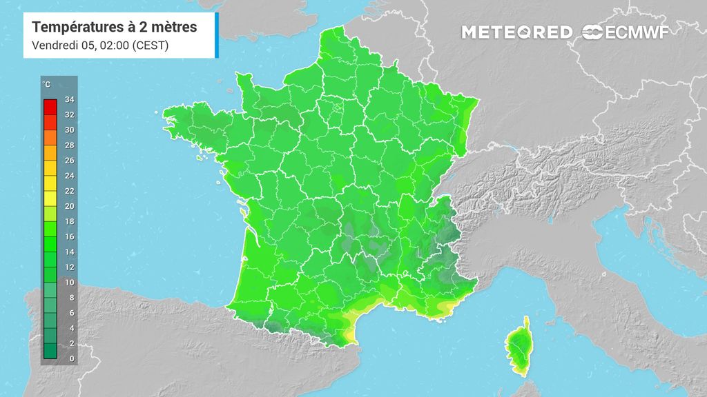 Chaleur qui sera aussi d'actualité en Corse avec plus de 30°C à l'ombre. On pourra ainsi parler de fortes chaleurs avec par exemple 34°C attendus du côté d'Ajaccio. Forte chaleur aussi en région toulousaine avec 30°C de possibles.