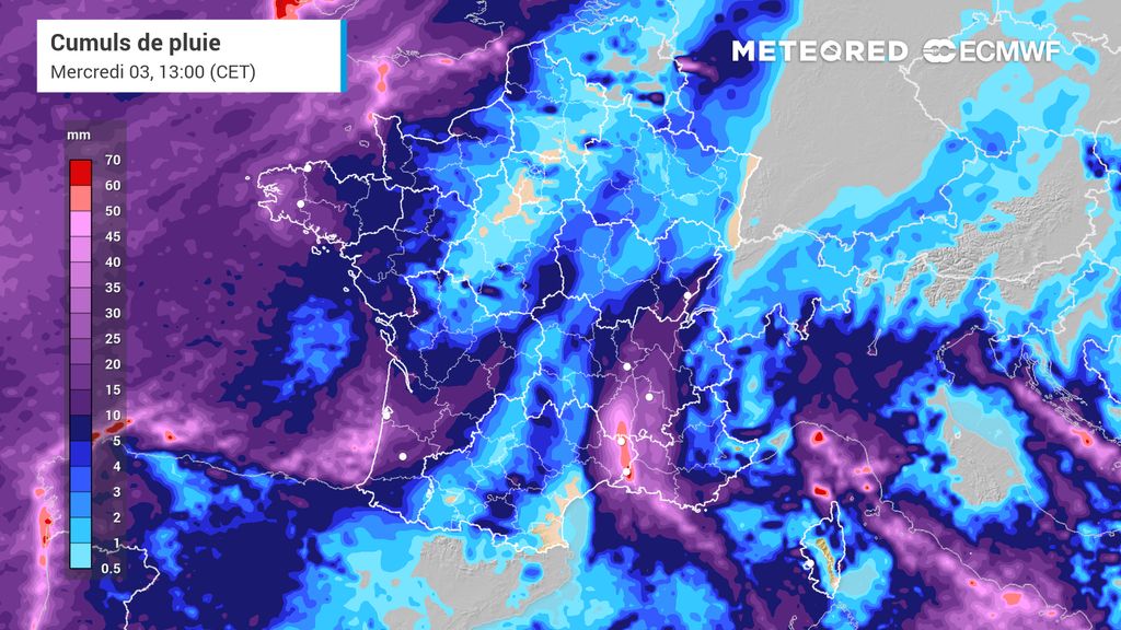 Mercredi, des pluies parfois soutenues remonteront de la Grande Bleue jusqu'au Lyonnais, avec de la neige en montagne, que ce soir sur les Alpes, le Massif central et les Pyrénées. Partout ailleurs, le ciel alternera entre nuages, petites éclaircies et rares ondées. Les températures seront stables et légèrement supérieures aux normales de saison.