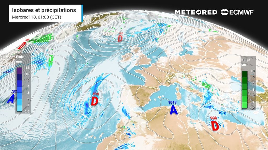 Le même programme ensoleillé se maintiendra mercredi dans la plupart des régions. Toutefois, le ciel se chargera sensiblement dans le quart sud-est en raison du développement d'une goutte froide entre la Corse et l'Italie. Elle aura pour conséquence d'apporter quelques averses entre la région PACA et l'île de beauté tandis que le vent de nord-est soufflera fort entre la Côte d'Azur et la Corse, atteignant 70 à 80 km/h.