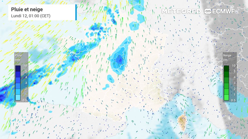 Les vents vont de nouveau s'orienter au sud-ouest pour le début de semaine. Cela aura pour effet de donner de nouvelles pluies par l'ouest dès dimanche qui gagneront l'est d'ici le début de matinée de lundi (avec un risque de neige en plaine et de verglas).