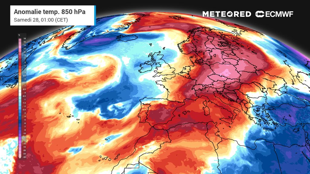 Avec une maximale de 27,4°C à Biarritz, l’écart à la normale est de +14 degrés ! Avec une température de 25,1°C à Tulle en Corrèze, l’écart à la normale atteint +15 à +16 degrés.