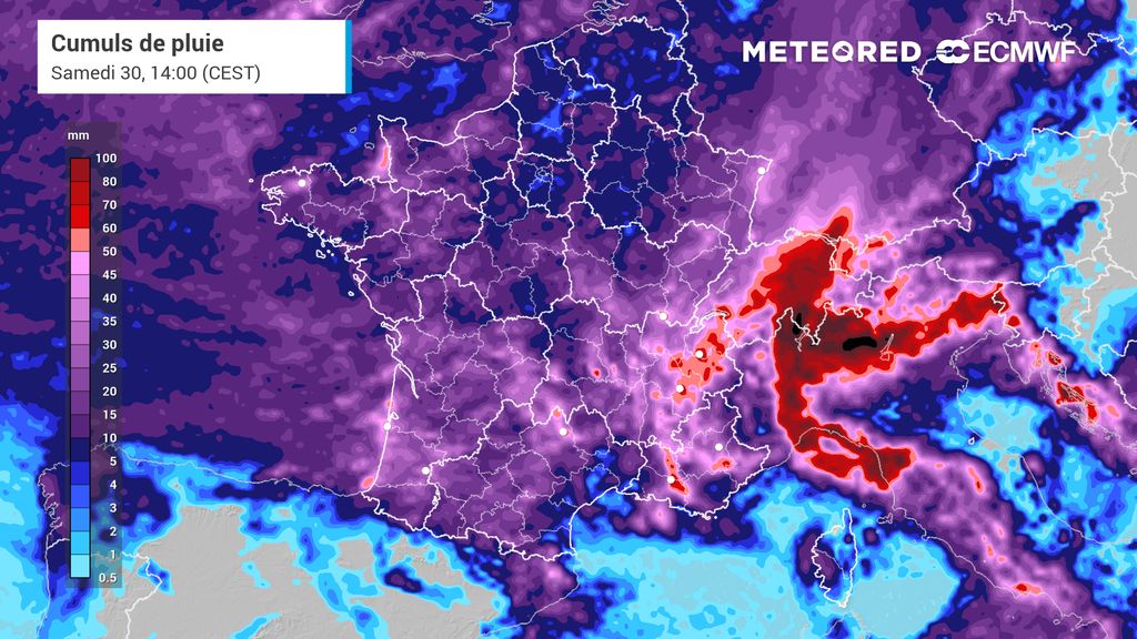 Dans l’intérieur des terres, les cumuls devraient être moindres mais pourraient tout de même approcher 40 à 60 litres d’eau par mètre carré en peu de temps.