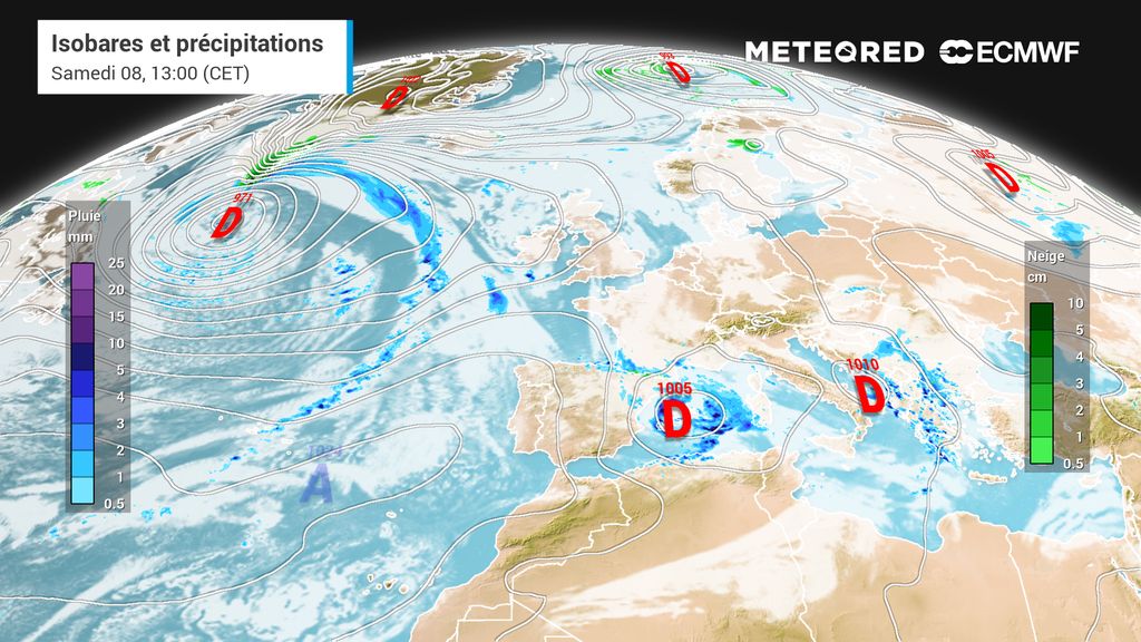 Il faudra surveiller la journée de samedi, car des pluies à nouveau soutenues pourraient se concentrer sur le sud-ouest de la France, tandis que la neige tombera à nouveau sur les Pyrénées.