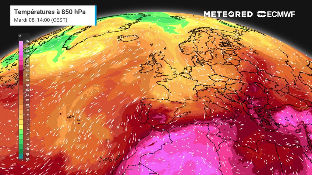 Cette invasion humide et nuageuse sera donc accompagnée d'air polaire maritime, pas forcément froid, mais surtout moins chaud : nous retrouverons ainsi à l'échelle du pays des températures de saison, avec une moyenne de 16 à 19°C le matin, et 24 à 28°C dans l'après-midi du Nord au Sud. L'indicateur thermique national devrait donc baisser, mettant fin à la vague de chaleur.