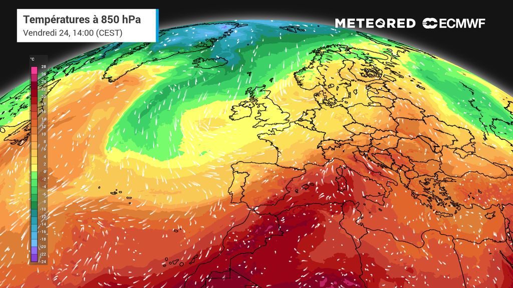 Suite au passage de cette dépression, le flux devrait bel et bien basculer au nord-ouest à nord. Ce changement de masses d'air devrait se faire entre samedi et dimanche.