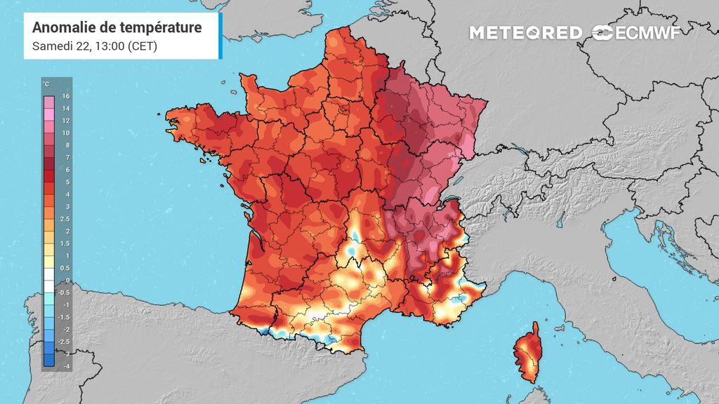 Malgré cette légère baisse, les valeurs resteront toujours nettement supérieures aux normales de saison l'après-midi, avec des températures situées entre 9 °C à Aurillac et 17 °C à Grenoble et Ajaccio.