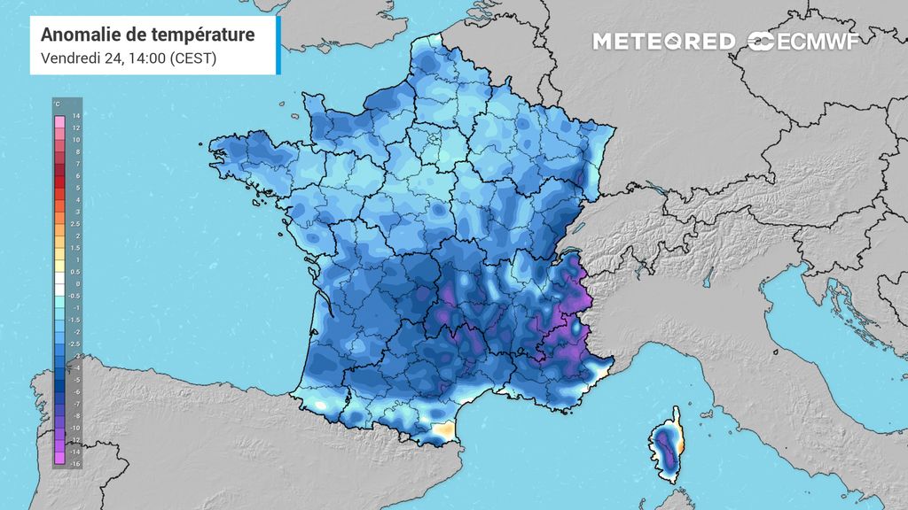 Les valeurs prévues cet après-midi seront parfois plus fraîches que celles mesurées ce matin.