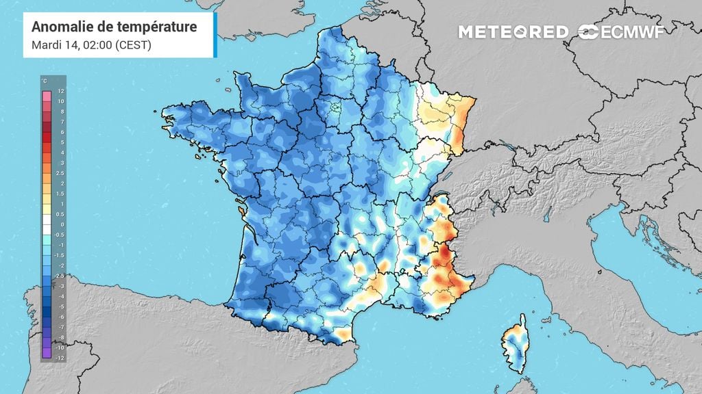 Il est prévu mardi après-midi 15°C à Brest et Cherbourg, 16°C à Lyon, 17°C à Nancy et Lille, 18°C à Alençon et au Havre, 19°C à Paris et Limoges, 20°C à Bastia et Toulon, 21°C à Marseille et 22°C à Montpellier.