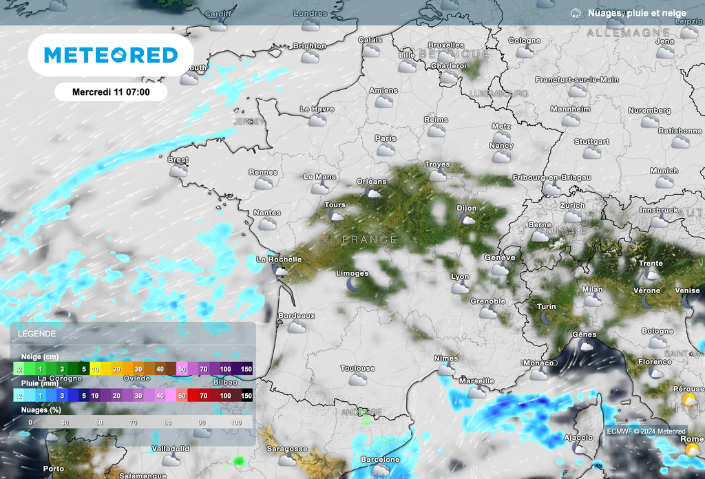 Un soleil plus généreux s’imposera en direction des Alpes et du pourtour méditerranéen. Toutefois, quelques flocons resteront possibles sur les Pyrénées et le Mercantour.