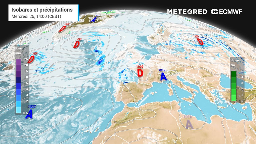 Le ciel est également assez gris ce matin au sud de la Garonne, et quelques averses résiduelles, parfois orageuses, peuvent encore circuler entre le nord des Alpes et l’Alsace.