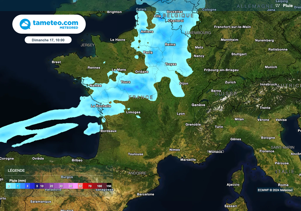 Un temps plutôt calme et agréable se profile pour la journée de samedi. Le soleil devrait facilement s'imposer dans le sud du pays. De belles éclaircies sont par ailleurs attendues entre les Hauts-de-France, l'Île-de-France, l'Auvergne et la région Grand Est. En revanche, de nouvelles pluies aborderont la Bretagne et le Cotentin en journée.