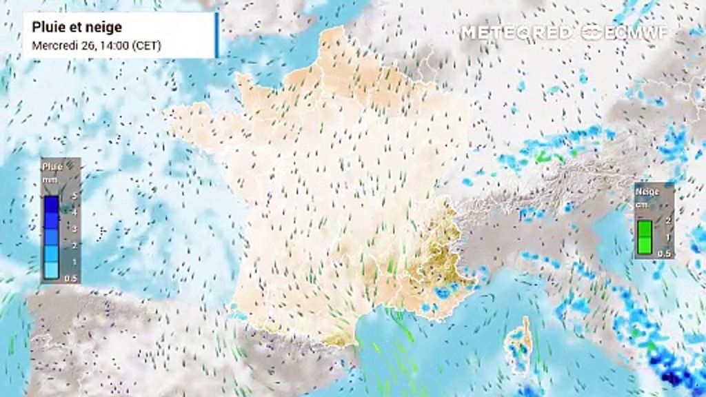 En effet, le ciel s'annonce encore gris ce matin entre le sud de la Nouvelle-Aquitaine, le Massif central, le nord des Alpes et le Jura. Quelques pluies faibles peuvent encore concerner ces régions. De faibles chutes de neige concernent les Pyrénées dès 1400 mètres d'altitude.