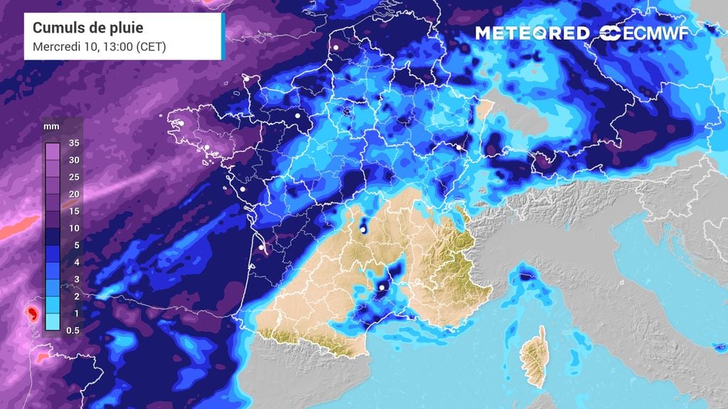 Les pluies gagneront un peu de terrain l’après-midi pour atteindre Rennes et Nantes en cours de journée.