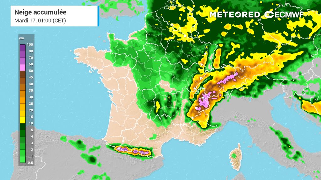 La perturbation apportera souvent de 1 à 3 centimètres sur la région parisienne. Sur les Hauts-de-France, les quantités devraient avoisiner les 3 à 7 centimètres, localement davantage en direction des frontières du nord-est et des Ardennes.