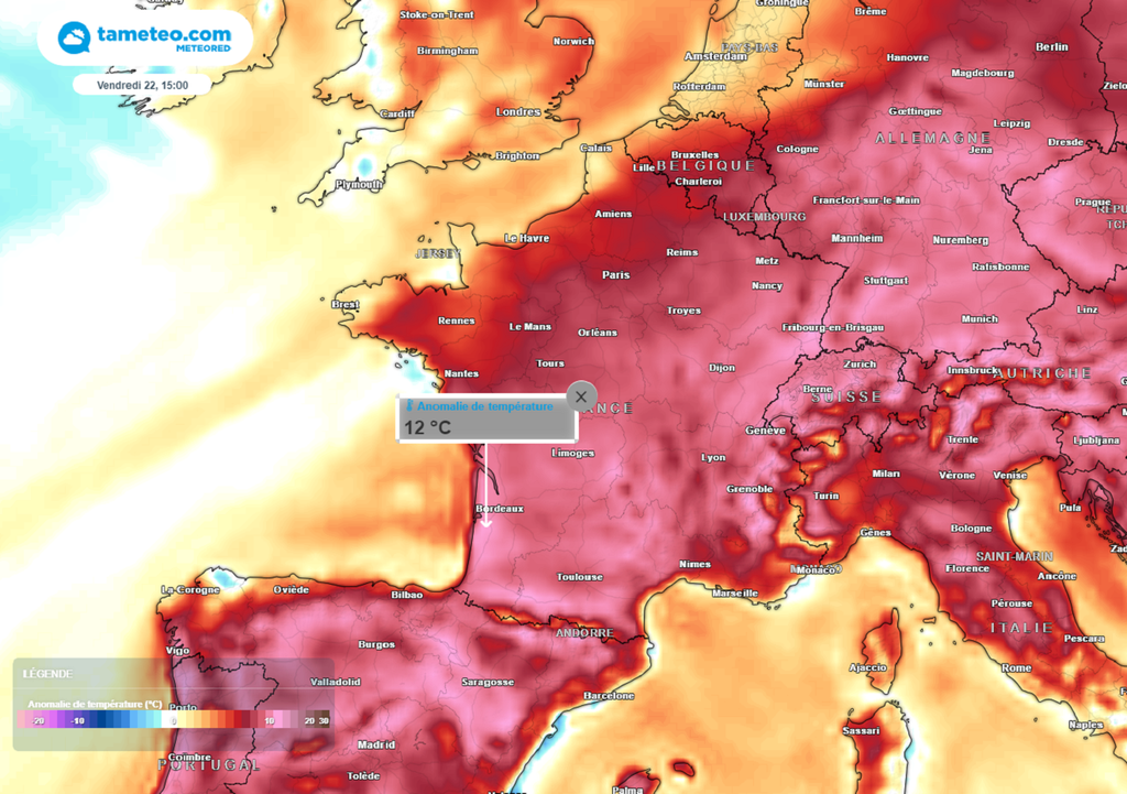 Si aucun record de douceur voire de chaleur n'a été et ne sera battu, les valeurs vont tout de même atteindre des niveaux assez remarquables. Vendredi après-midi, elles se situeront jusqu'à 10 voire 12°C au-dessus des normales saisonnières. Les valeurs minimales sont également élevées pour la saison, s'inscrivant de ce qui a pu être observé au cours des dernières semaines et des derniers mois. Mars 2024 devrait d'ailleurs être le 26ème mois consécutif avec une température moyenne nationale au-dessus de la normale, rien que ça !