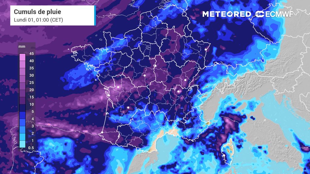 Entre ce vendredi et aux environs du 6 décembre, les projections atmosphériques optent pour des cumuls de 80mm voire plus en direction de la Bretagne notamment. D'ici là les prévisions pourront évoluer mais le signal d'importants cumuls est bien présent.