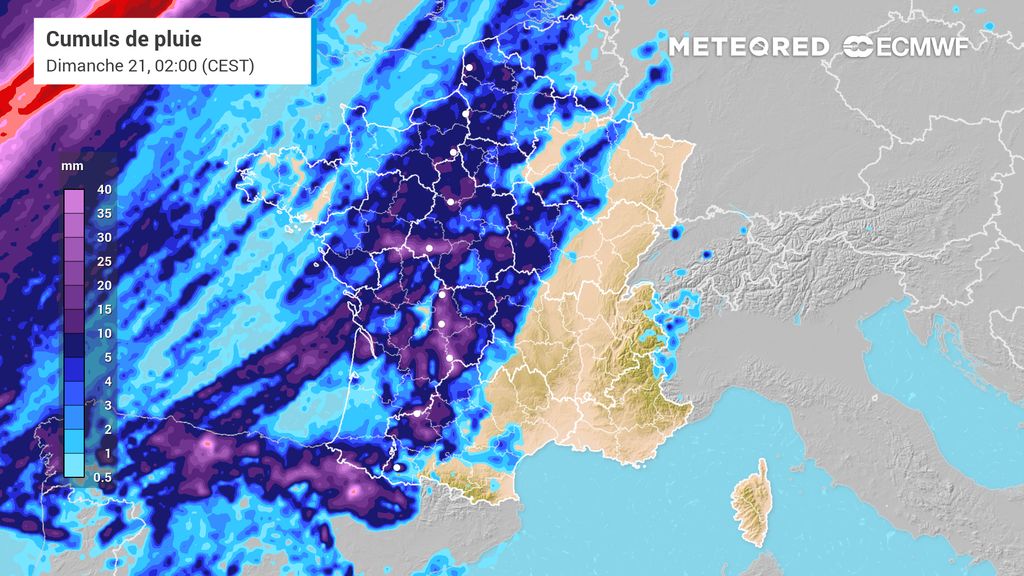 Le potentiel pluvieux est en effet prononcé pour cette nouvelle dégradation. Généralement, les différentes modélisations optent pour des cumuls entre 20 et 50mm, localement plus.