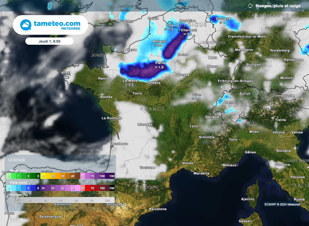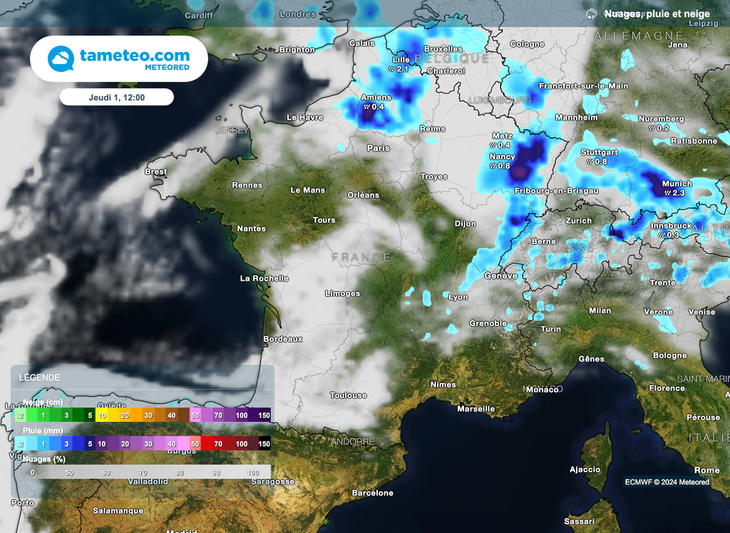 Ce temps instable sera donc présent une bonne partie de la journée entre les Hauts-de-France et le Grand-Est. La région parisienne devrait être concernée plutôt en début de journée bien que des incertitudes soient encore présents.