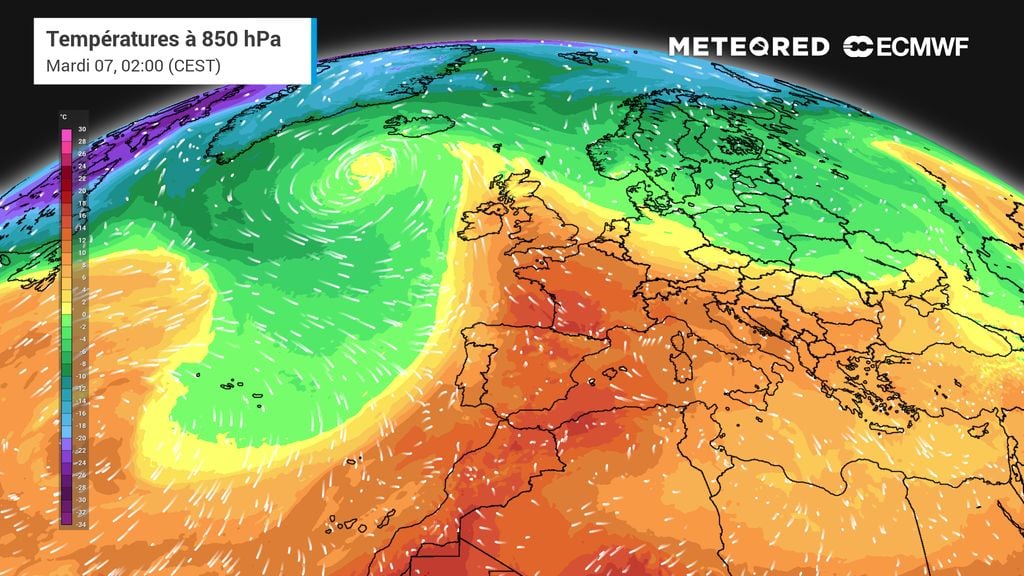 Les modèles européens et américains sont en phase pour cette journée et annoncent les températures les plus chaudes dans le sud-ouest. Le modèle européen indique près de 30 degrés lundi après-midi entre le sud de la Gironde et les Landes. Il fera souvent 25 à 27 degrés sur un grand quart sud-ouest.