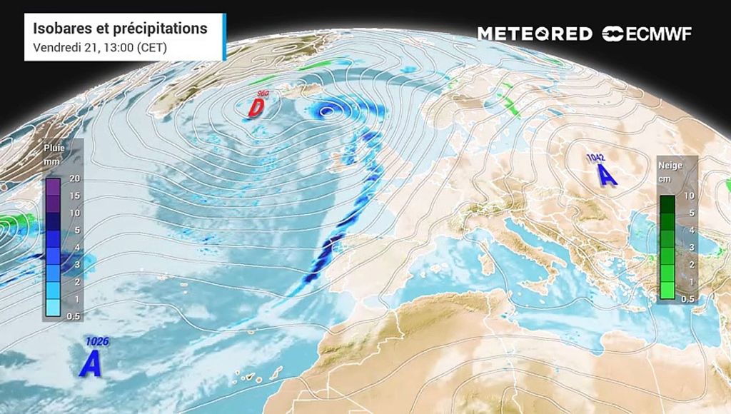 Douceur plus prononcé en direction du sud-ouest et donc du pays-basque. Un peu de fraîcheur sera présente en direction de la Corse. Le pic de grande douceur de vendredi aura donc été relativement court bien que l'on ne va pas retrouver de conditions hivernales.