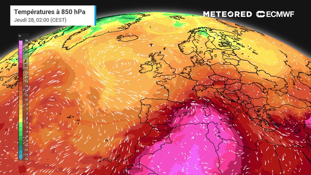 Cela étant, même si cela pourra apporter un risque de fort coup de vent ou de tempête (à déterminer selon les prochaines projections atmosphériques) en direction de l'Angleterre, sur la France, l'impact sera essentiellement une hausse des températures entre dimanche et lundi.