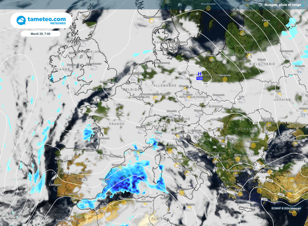 D'ici le début de semaine prochaine, on va retrouver une plus vaste zone de hautes pressions. Résultat, cela viendra atténuer les dégradations y compris sur le pourtour méditerranéen français.