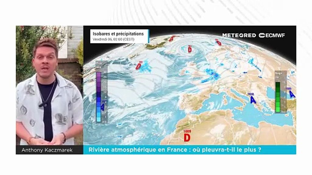 Plus au Nord et à l'Ouest, la situation était bien plus calme, avec un temps souvent ensoleillé et des averses très rares. Mais la situation s'est inversée ce jeudi : c'est désormais la pluie, de manière classique, qui revient dans un flux d'Ouest à Sud-Ouest océanique. C'est même une rivière atmosphérique qui va concerner la France jusqu'à samedi : dans quelles régions va-t-il pleuvoir le plus ?