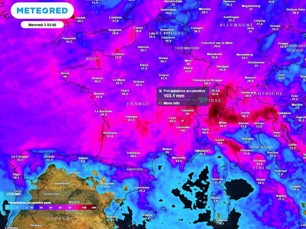En provenance de l'Atlantique, elles s'annoncent très actives avec des cumuls importants et des rafales de vent parfois fortes. Ainsi, les précipitations seront (très) excédentaires partout, exception faite du Languedoc et du Roussillon où la tramontane garantira un temps un peu plus sec. Cette humidité s'accompagnera de températures un peu fraîches, situées 2 à 3°C en dessous des normales de saison.