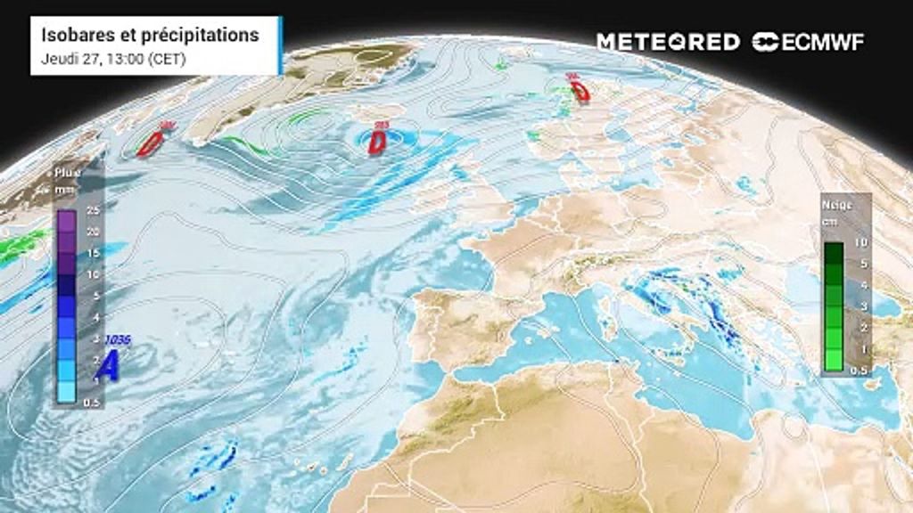 Mais les choses vont changer en début de semaine prochaine grâce au retour des hautes pressions depuis l'Atlantique. Elles vont venir se positionner sur l'Allemagne et apporteront ainsi un temps sec et lumineux. Par ailleurs, avec un flux s'orientant progressivement au sud-sud-est, les températures deviendront printanières voire même estivales pour débuter le mois d'avril...