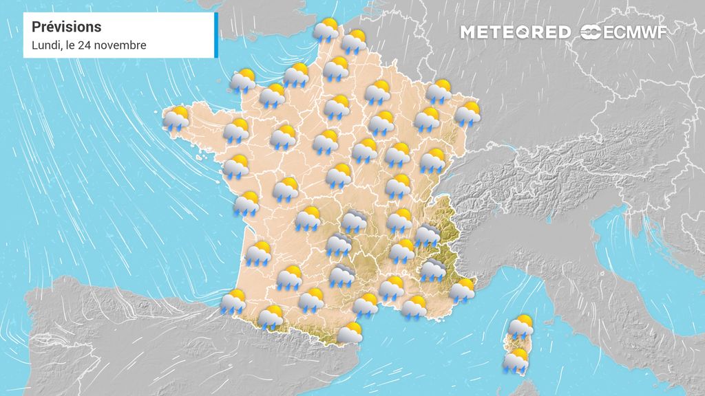 À ce jour, les prévisions météo pour les festivités de la Saint-Nicolas vont dans le sens d'un régime d'averses parfois marquées, d'autant plus sur la moitié ouest de l'hexagone. Plus à l'est, on devrait là aussi observer des passages d'averses mais l'anticyclone devrait les atténuer.